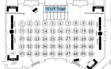 You should have recieved a text message with your table assignment for tonight's event. Please use the map below to find where your table is located in the ballroom!